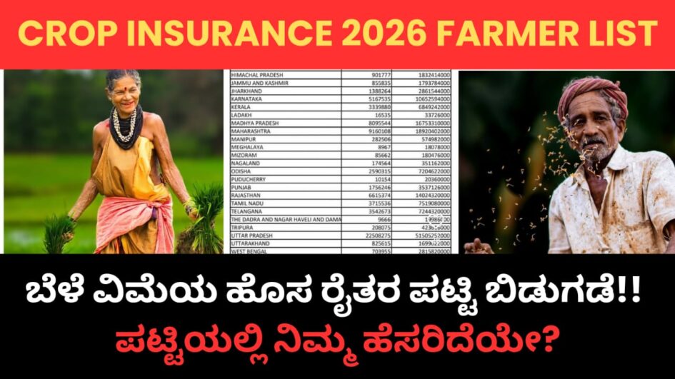 Crop Insurance 2026 List :: ಬೆಳೆ ವಿಮೆಯ ಹೊಸ ರೈತರ ಪಟ್ಟಿ ಬಿಡುಗಡೆ!! ಈ ಪಟ್ಟಿಯಲ್ಲಿದ್ದರೆ, ರೈತರ ಖಾತೆಗೆ ಬೆಳೆ ವಿಮೆ ಜಮಾ!!!