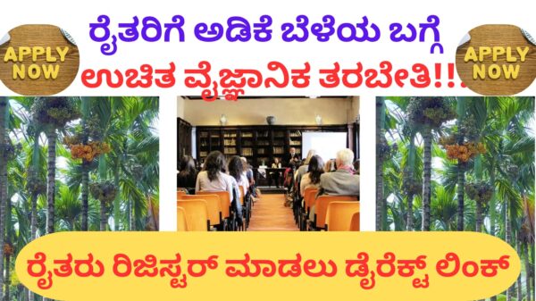 Arecanut Training :: ರೈತರಿಗೆ ಅಡಿಕೆ ಬೆಳೆಯ ಬಗ್ಗೆ ವೈಜ್ಞಾನಿಕ ತರಬೇತಿ!!! ರೈತರು ರಿಜಿಸ್ಟರ್ ಮಾಡಿ, ತರಬೇತಿಯಲ್ಲಿ ಭಾಗವಹಿಸಿ!!! ರೈತರಿಗೆ ಅಡಿಕೆ ಬೆಳೆಯ ಬಗ್ಗೆ ತರಬೇತಿ:: ಅಡಿಕೆ ಬೆಳೆ ಬೆಳೆಯುವ ಬಗ್ಗೆ ವೈಜ್ಞಾನಿಕ ಮತ್ತು ಸುಧಾರಿತ ತಾಂತ್ರಿಕತೆಯ ಬಗ್ಗೆ ಉಚಿತ ತರಬೇತಿ!!! ಇಲ್ಲಿದೆ ಎಲ್ಲಾ ಮಾಹಿತಿ!! karnataka is major producer of arecanut in… Continue Reading →