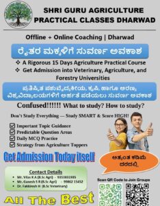 ‘ಕೃಷಿ ವಿಜ್ಞಾನಿ‘ಗಳಾಗಬಹುದು. ಅರ್ಹ ಅಭ್ಯರ್ಥಿಗಳು ಪ್ರಾಯೋಗಿಕ ಪರೀಕ್ಷೆ ಮತ್ತು ದಾಖಲಾತಿ ಪ್ರಕ್ರಿಯೆಗಳನ್ನು ಸಮಯಕ್ಕೆ ಸರಿಯಾಗಿ ಪೂರೈಸಿ, ಉತ್ತಮ ಭವಿಷ್ಯ ರೂಪಿಸಿಕೊಳ್ಳಬೇಕು.