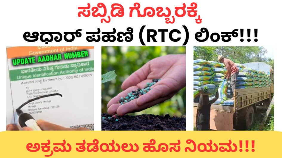 Aadhar and RTC Link :: ಸಬ್ಸಿಡಿ ಗೊಬ್ಬರಕ್ಕೆ ಆಧಾರ್ ಪಹಣಿ (RTC) ಲಿಂಕ್!!!ಅಕ್ರಮ ತಡೆಯಲು ಹೊಸ ನಿಯಮ!!!
