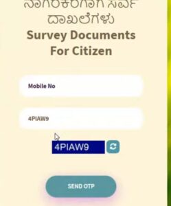 5. ನಿಮ್ಮ ದಾಖಲೆಗಳನ್ನು ಡೌನ್‌ಲೋಡ್ ಮಾಡಿಕೊಳ್ಳಲು, “Survey Document” ಎಂಬ ಆಯ್ಕೆಯ ಮೇಲೆ ಕ್ಲಿಕ್ ಮಾಡಿ. ನಿಮ್ಮ ಮೊಬೈಲ್ ಫೋನ್ ಸಂಖ್ಯೆಯನ್ನು ನಮೂದಿಸಿ. ನಂತರ ನಿಮ್ಮ ಮೊಬೈಲ್‌ಗೆ ಬರುವ OTP (One Time Password) ಅನ್ನು ನಮೂದಿಸಿ ಲಾಗಿನ್ ಆಗಿ.