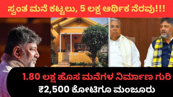 5 Lakh for House :: ಸ್ವಂತ ಮನೆ ಕಟ್ಟಲು, 5 ಲಕ್ಷ ಆರ್ಥಿಕ ನೆರವು!!! 1.80 ಲಕ್ಷ ಹೊಸ ಮನೆಗಳ ನಿರ್ಮಾಣ ಗುರಿ, ₹2,500 ಕೋಟಿಗೂ ಮಂಜೂರು!!