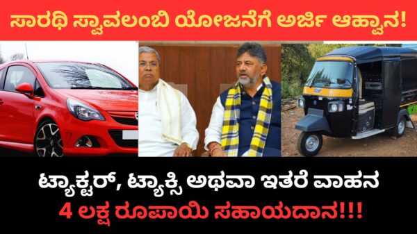 4 Lakh Subsidy ::ಟ್ಯಾಕ್ಟರ್, ಟ್ಯಾಕ್ಸಿ ಅಥವಾ ಇತರೆ ವಾಹನ 4 ಲಕ್ಷ ರೂಪಾಯಿ ಸಹಾಯದಾನ!!! ಸಾರಥಿ ಸ್ವಾವಲಂಬಿ ಯೋಜನೆಗೆ ಅರ್ಜಿ ಆಹ್ವಾನ!!!